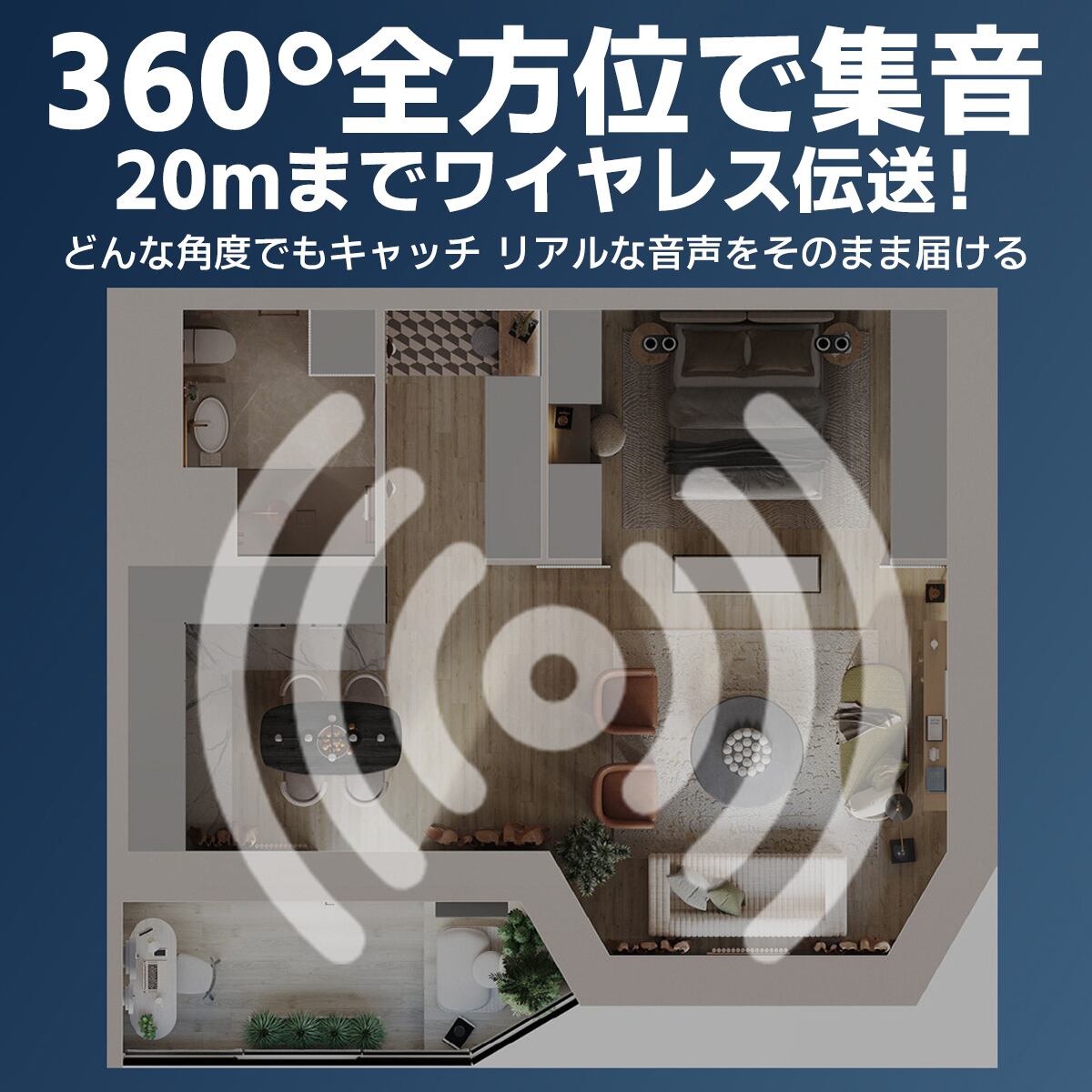 ワイヤレス設計: 煩わしい配線が不要なワイヤレス仕様。動きながらの撮影や発表にも対応します。